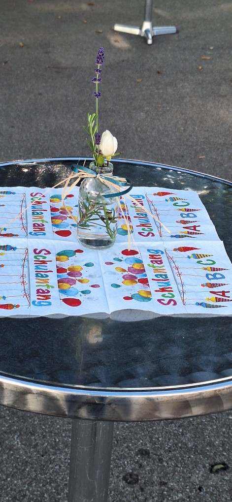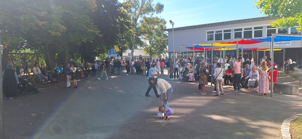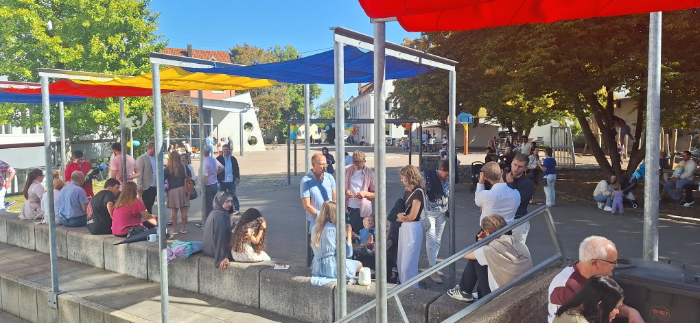 Nach einer kleinen Einschulungsgeschichte, die technisch zum Teil mit kleinen Schwierigkeiten verlief, konnten auch die 1. Klässler ihre Klassenlehrerinnen sehen und den ersten Unterricht in den eigenen und perfekt vorbereiteten Klassenzimmern erleben. Die Eltern wiederum ließen es sich bei Kuchen und Kaffee samt weiteren Getränken gut gehen. Die Eltern der 2. Klassen organisierten die gesamte Verpflegung und ließen es sich auch nicht nehmen, das Forum, das Foyer und den Pausenhof zu schmücken. Das alles gelang wirklich gut!