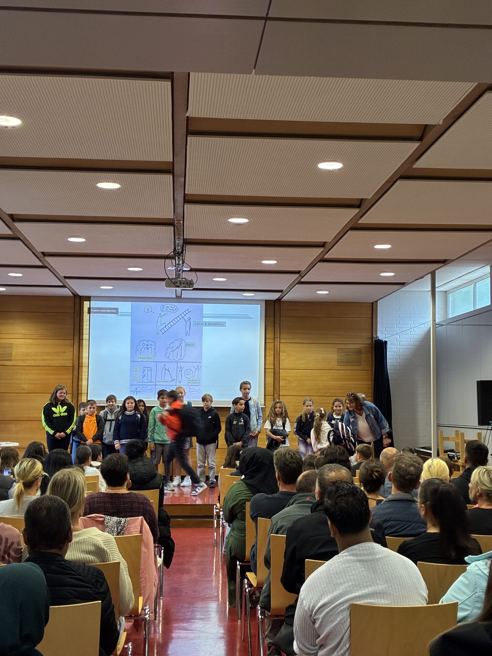 Aber nicht nur die 5. Klässler fanden an der GRS eine neue Schul-Heimat, sondern auch die letztjährigen Vorschulkinder. Zunächst gestaltete Herr Palmer am 20.09.2025 um 9 Uhr bzw. 10 Uhr wunderbare Gottesdienste und dann kamen die Kinder mit deren Begleitungen zur Einschulungsfeier an die Schule. Mit einer kurzen Begrüßung hieß der Schulleiter die Kinder willkommen. Dann war der große Auftritt der 2. Klassen, die einen Rap gesungen haben, ein kurzes Theaterstück auf die Bühne brachten, das von den Kolleginnen eigens geschrieben wurde, und zum Abschluss der Aufführung sangen die Kinder nochmals ein Lied. Das gelang sehr gut und die Nervosität der Kinder fiel von den 2. Klässlern nach der Aufführung ab. Einstudiert wurden die Darbietungen von den Klassenlehrerinnen der Klasse 2. Herzlichen Dank auch dafür!